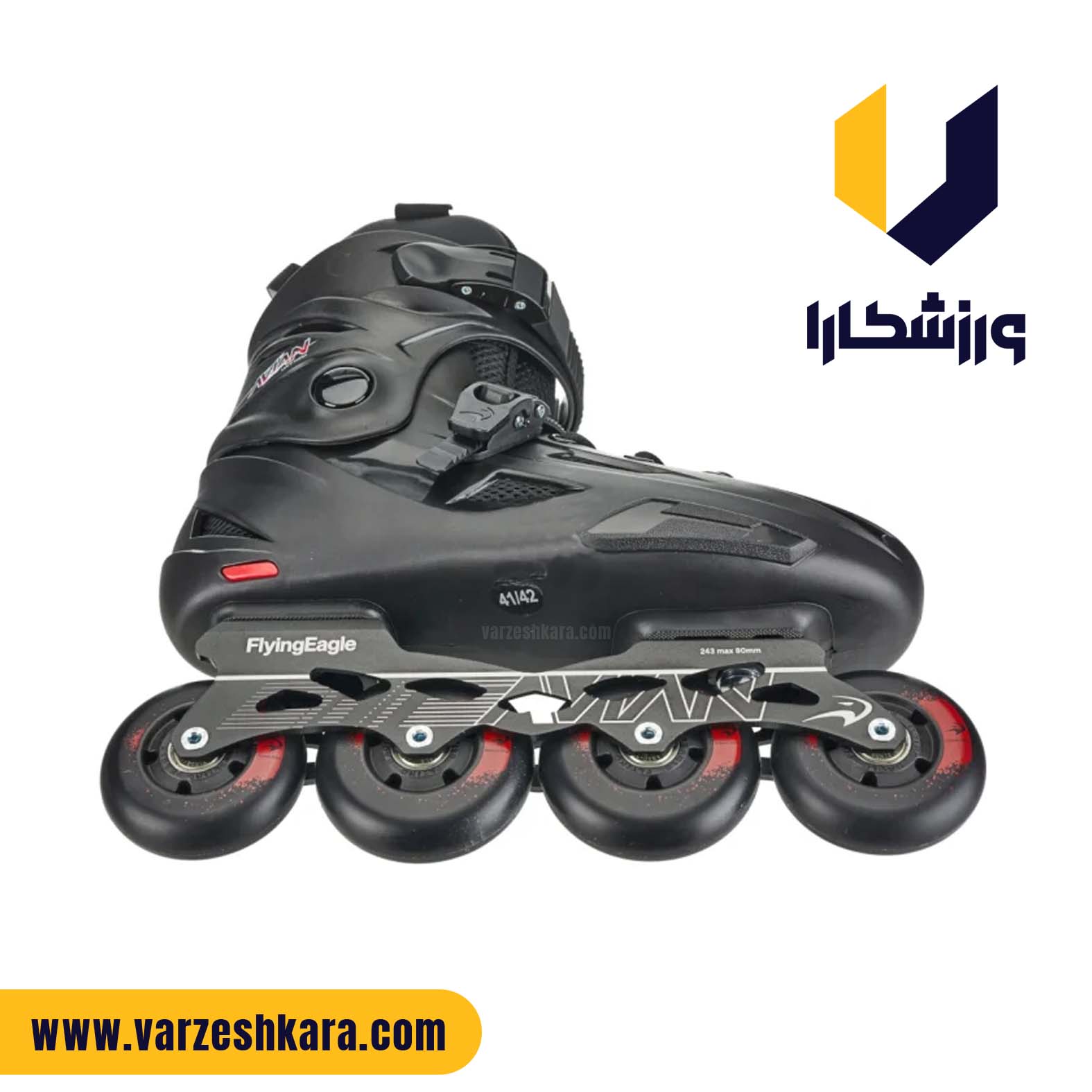 کفش اسکیت Flying Eagle FBS معمولاً به صورت سایز ثابت (Non-adjustable) عرضه میشود، یعنی برای هر شماره پا یک سایز مشخص طراحی شده است.